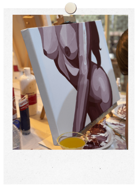 Every guest will have a hand drawn Custom Canvas of their body. Canvases are a generous 16 × 20 inch and come fully framed and ready to hang. All painting supplies and table easels are included.